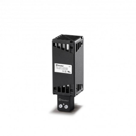 Description: Resistance chauffante 120 à 230V AC/DC, 50W, IP20, limitation de température par sonde PTC auto régulée, bornes à cage, montage verticale sur rail 35mm, température ambiante de -45 à 50°C
