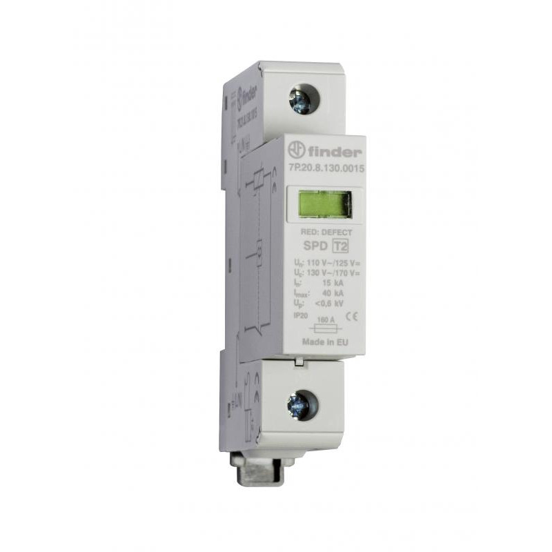 Marque: FINDERRéférence: 7P2181301015Description: Parafoudre type 2 varistor extractible Un=130V in=15kA Up=0,4kV contrôle visuel état varistor + télésignalisationEmballage: 1