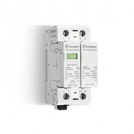 Description: Parafoudre type 2 pour SYST mono 1 varistorextractible+ éclateuR protectIonS P-N + N-PE Un=230V in=20kA Up=1,2kV contrôle visuel état varistorsans Telesignalisation