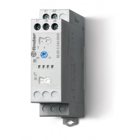 Marque: FINDERRéférence: 838202400000Description: Relais temporisé modulaire monofonction (SD) multitension 2NO 16A 24 à 240V AC/DC, temporisation disponible de 0,05s à 10 jours, largeur 22,5mmEmballage: 5