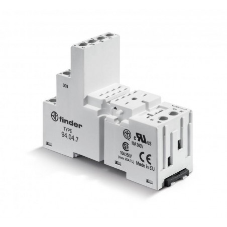 Description: Support 10A 250V, température ambiante -40° à 70°C, pour série 5534, de couleur bleue, raccordement bobine et contacts séparé, étrier métallique, bornes à cage, montage sur panneau ou rail 35mm, application ferroviaire