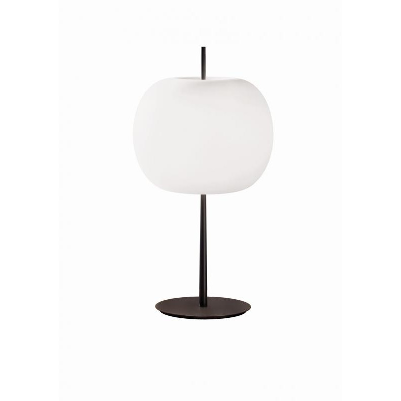 Description: Lampe à poser avec variation de lumière. Diffuseur en verre opalin soufflé double couche. Corps en métal verni disponible en trois finitions: noir, cuivre et laiton. Black