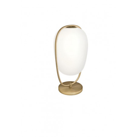 Marque: KUNDALINIRéférence: K385320Description: Lampe à poser. Diffuseur en verre opalin soufflé double couche. Structure en métal verni. BrassEmballage: 1