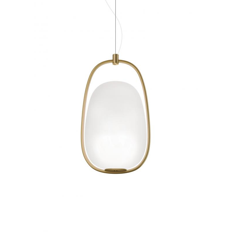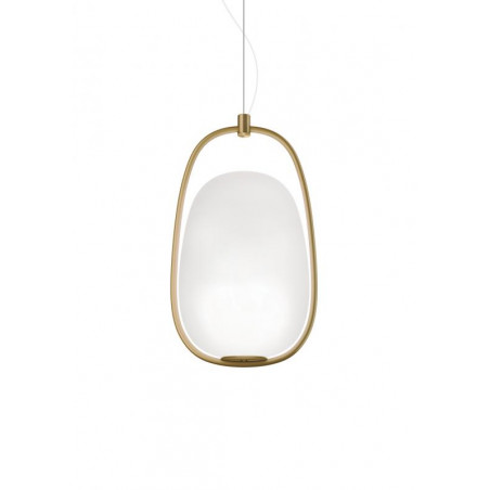 Marque: KUNDALINIRéférence: K386320Description: Suspension. Diffuseur en verre opalin soufflé double couche. Structure en métal verni. BrassEmballage: 1