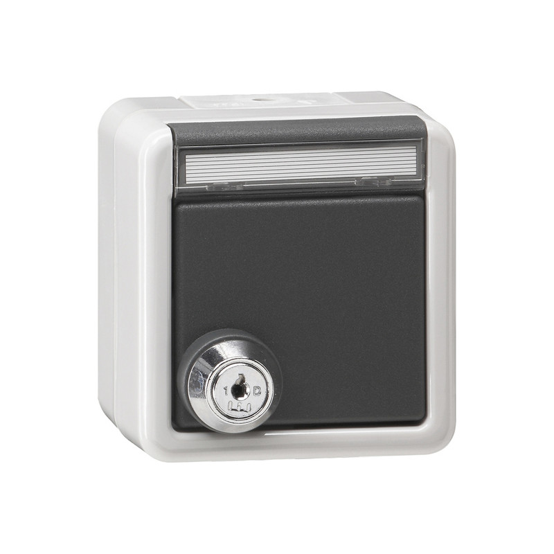 Description: SCHUKO clap. serrure id. ZI Mont.app. prot.eau gris
