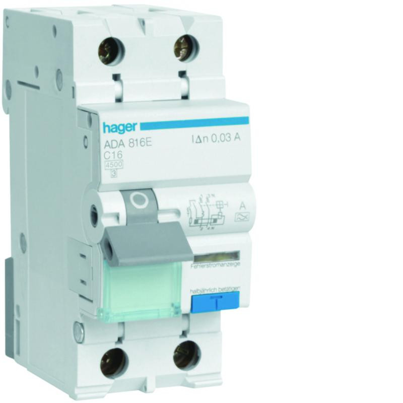 Description: Disjoncteur différentiel 1P+N 4,5kA C 16A 30mA type A 2MOD.