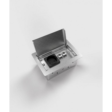 Boîte de sol 3302E - 2 modules 1x UTE 2x CAT6a, acier inoxydable brossé