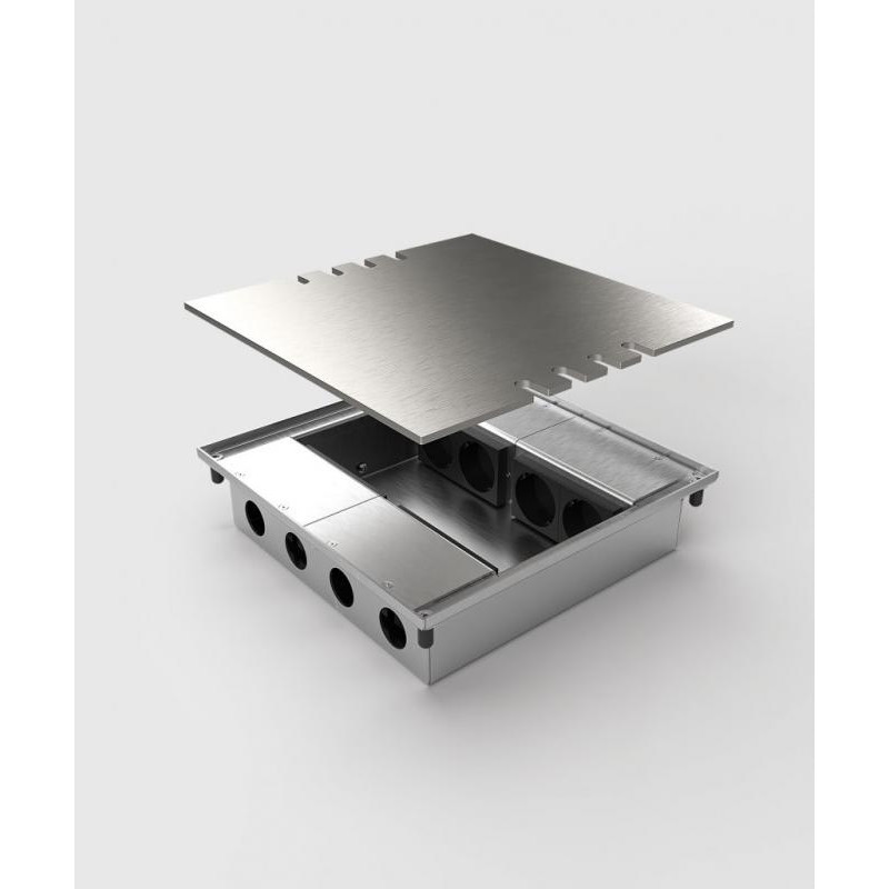 Boîte de sol 8808E - 8 modules 4x UTE 8x CAT6a, acier inoxydable brossé
