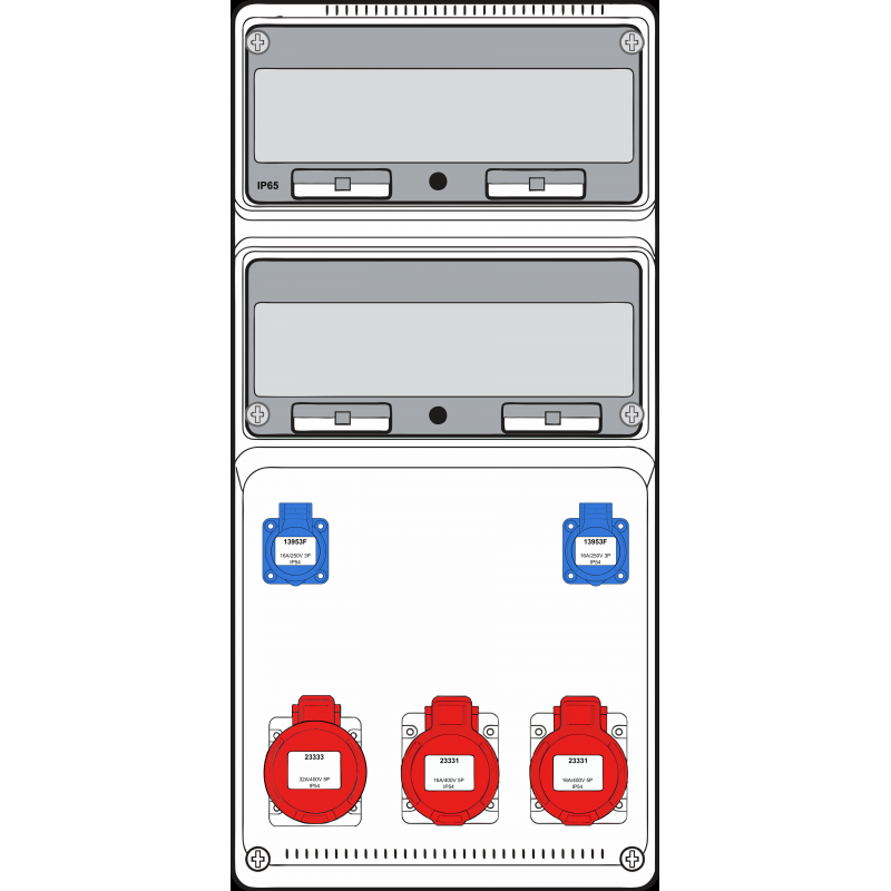 Boîte murale combi XLarge - 2x 16A 5P 400V 1x 32A 5P 400V 2x mono 230V - int disj 4 - 10kA