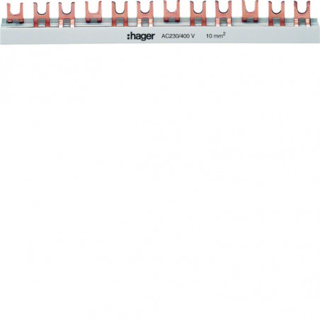 Marque: HagerRéférence: KDN363BEAN: 3250613740962Emballage: 20Description: Barre de pontage 3P 63A fourche 10mm² 57M