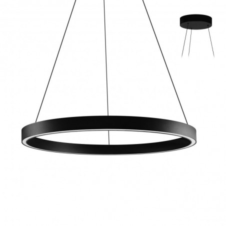 Suspension circulaire.Diffuseur opalin.3CCT 3000K, 3500K ou 4000K.Avec câbles de suspension noirs réglables 2,5m max. Patère ronde pour montage en saillie.Convertisseur dimmable DALI intégré.Panneau acoustique dispo en accessoire.