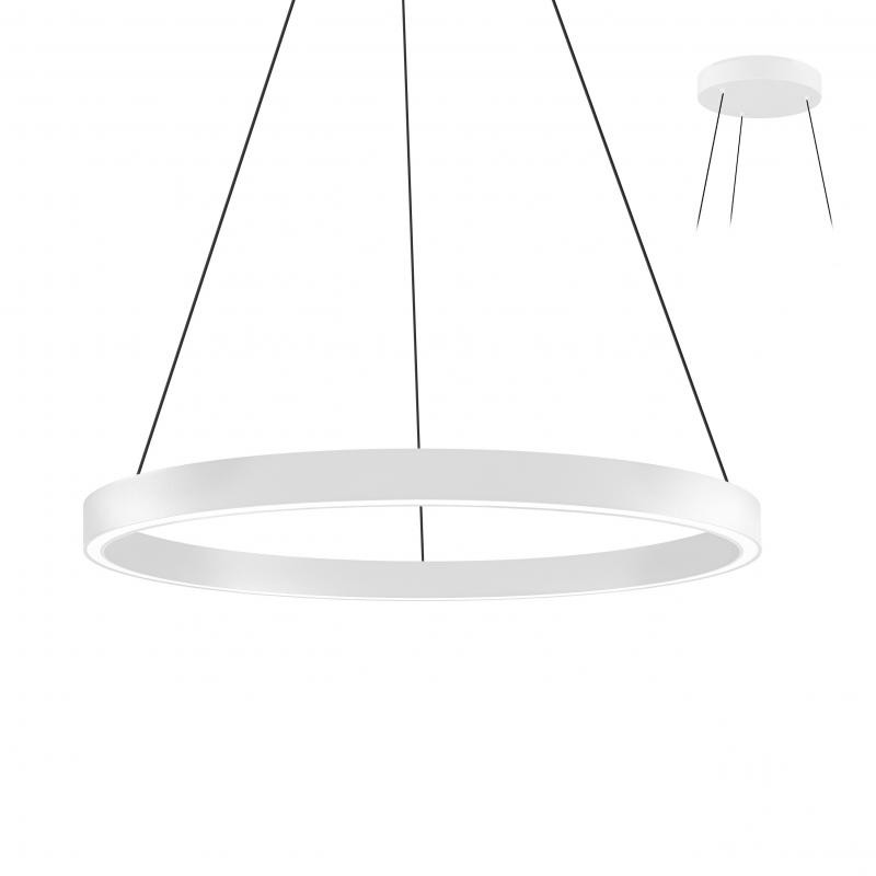 Suspension circulaire.Diffuseur opalin.3CCT 3000K, 3500K ou 4000K.Avec câbles de suspension blancs réglables 2,5m max. Patère ronde pour montage en saillie.Convertisseur dimmable DALI intégré.Panneau acoustique dispo en accessoire.