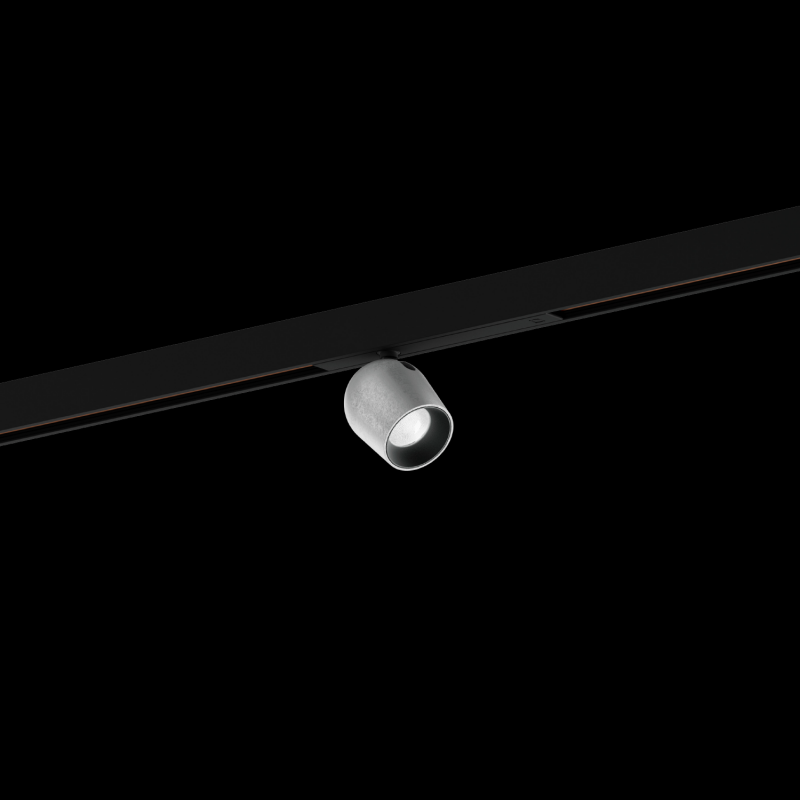 Spot sur rail dalimentation 48V en aluminium moulé sous pression adaptateur de rail en polycarbonate noir de sécurité tête de spot rotatif à 350 et orientable à 90 angle de diffusion 25 avec technologie COB Chip on Board pour une efficacité ma