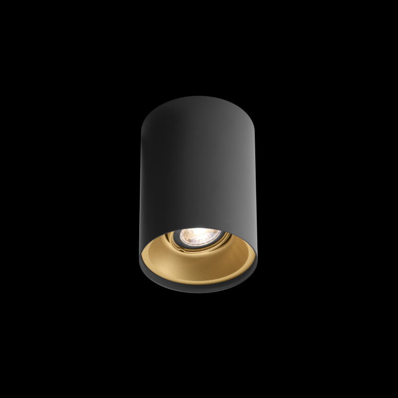 Downlight de plafond en saillie cylindrique en aluminium moulé sous pression orientable surface noir mat champagne revêtement par poudre , structure de surface mate peinture humide , lisse satiné RAL 9011 culot GU10 type de lampe PAR16 max