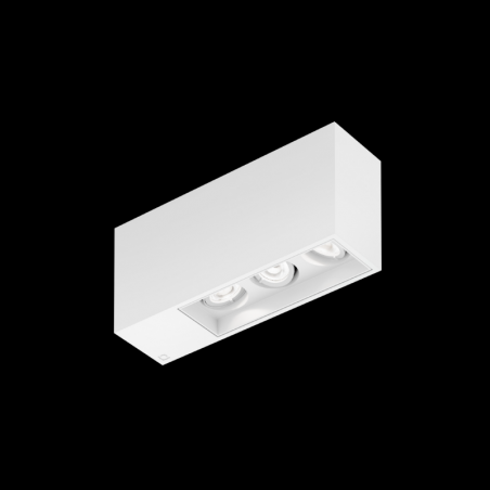 Plafonnier Downlight apparent rectangulaire avec 3 spots en aluminium moulé sous pression surface blanc mat revêtement par poudre , structure de surface mate RAL 9010 avec technologie COB Chip on Board pour une efficacité maximale coupure d