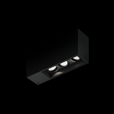 Plafonnier Downlight apparent rectangulaire avec 3 spots en aluminium moulé sous pression surface noir mat revêtement par poudre , structure de surface mate RAL 9011 avec technologie COB Chip on Board pour une efficacité maximale coupure de