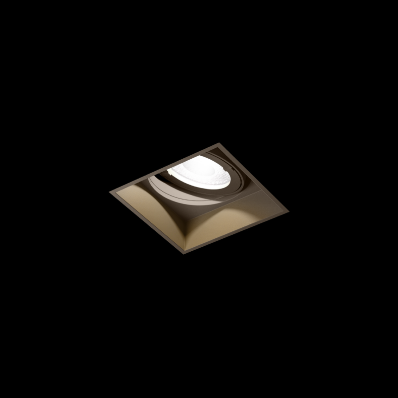 Plafonnier encastré carré en aluminium surface bronze peinture humide , mate lisse RAL 7013 profondeur dencastrement 65 mm avec technologie COB Chip on Board pour une efficacité maximale couleur de lumière 2700 K 2 SDCM initial MacAdam CRI