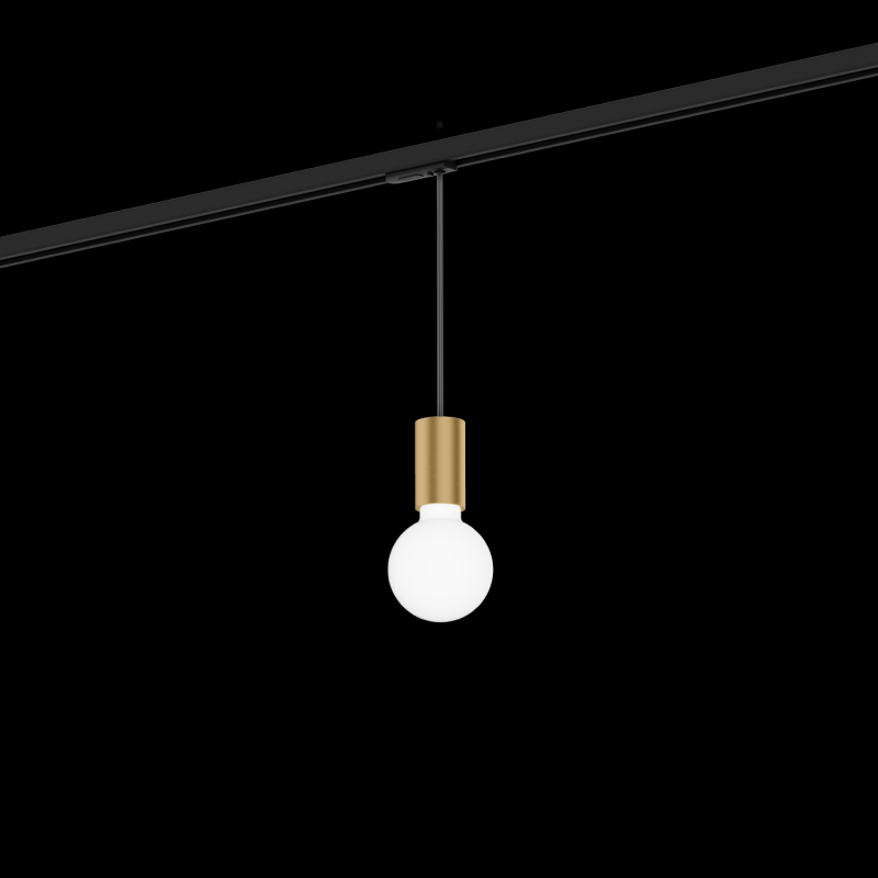 Douille E27 suspendue en aluminium moulé sous pression rail monophasé surface en Champagne Brushed adaptateur de rail en polycarbonate et câble en noir de sécurité culot E27 max. 12W 220 - 240 V indice de protection IP20 Classe 1 avec suspen
