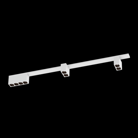 Luminaire linéaire en saillie avec 3 modules multi-spot en aluminium boîtier Lentille en polycarbonate et réflecteur avec technologie COB Chip on Board pour une efficacité maximale coupure de phase dim couleur de lumière 3000 K CRI 90 indic