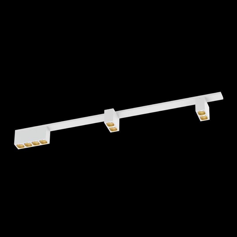 Luminaire linéaire en saillie avec 3 modules multi-spot en aluminium boîtier Lentille en polycarbonate et réflecteur avec technologie COB Chip on Board pour une efficacité maximale coupure de phase dim couleur de lumière 3000 K CRI 90 indic