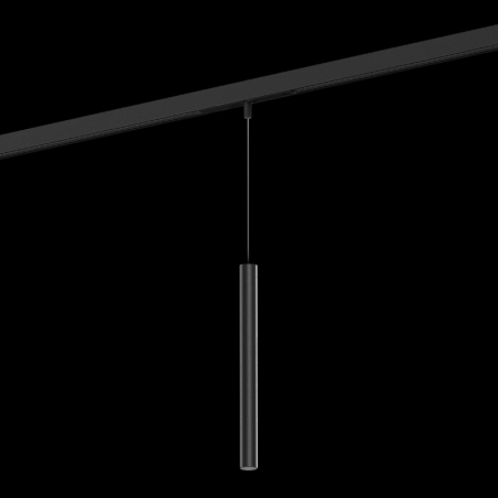 Luminaire suspendu pour rails 48V en aluminium adaptateur de rail avec système de câble réglable en hauteur surface noir mat revêtement par poudre , structure de surface mate adaptateur de rail en polycarbonate et câble en noir de sécurité
