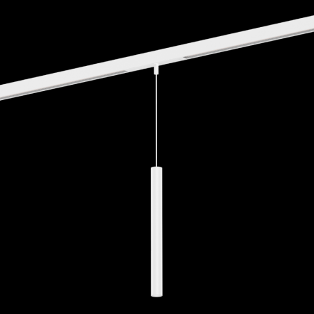 Luminaire suspendu pour rails 48V en aluminium adaptateur de rail avec système de câble réglable en hauteur surface blanc mat revêtement par poudre , structure de surface mate adaptateur de rail en polycarbonate et câble en blanc pur avec t