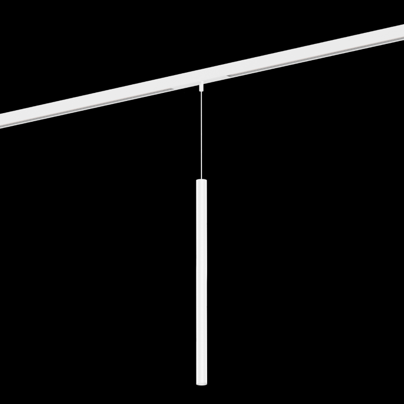 Luminaire suspendu pour rails 48V en aluminium adaptateur de rail avec système de câble réglable en hauteur surface blanc mat revêtement par poudre , structure de surface mate adaptateur de rail en polycarbonate et câble en blanc pur avec t