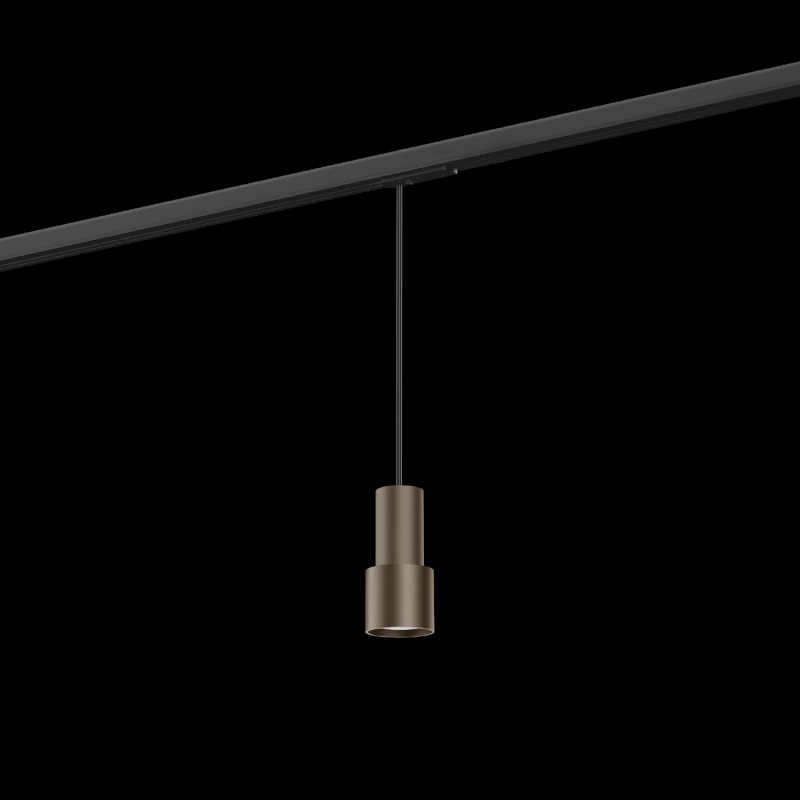 Luminaire suspendu pour rails dalimentation monophasés en aluminium moulé sous pression adaptateur de rail avec système de câble réglable en hauteur surface en Bronze Brushed peinture humide structure de surface mate RAL 9011 culot GU10 type de