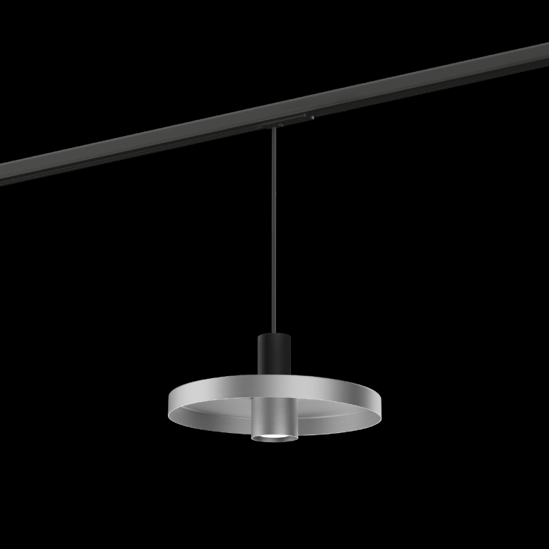 Luminaire suspendu pour rails dalimentation monophasés en aluminium moulé sous pression adaptateur de rail avec système de câble réglable en hauteur surface en Black Matt Aluminium Brushed peinture humide structure de surface mate RAL 9011 culo