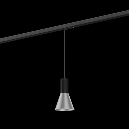 Luminaire suspendu pour rails dalimentation monophasés en aluminium moulé sous pression adaptateur de rail avec système de câble réglable en hauteur surface en Black Matt Aluminium Brushed peinture humide structure de surface mate RAL 9011 culo