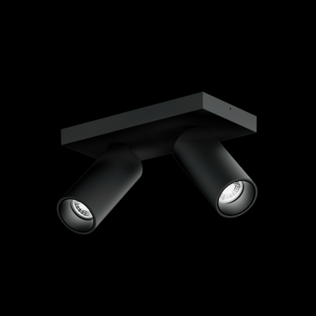 Plafonnier apparent avec 2 spots en aluminium moulé sous pression avec cache-piton rectangulaire orientable surface noir mat revêtement par poudre , structure de surface mate bague intérieure noire culot GU10 type de lampe PAR11 2x max. 1