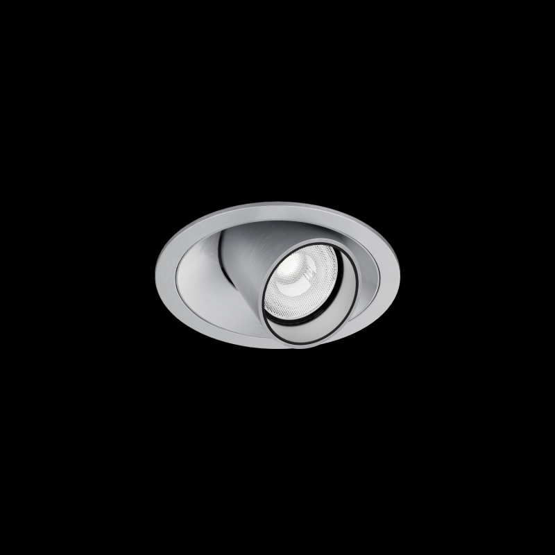 Downlight rond encastré dans le plafond en aluminium moulé sous pression orientable avec bord continu surface en aluminium brut RAL 9006 bague intérieure noire montage sans outil au moyen de ressorts à lames convient pour une épaisseur de plaf