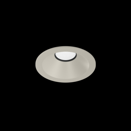 Downlight rond encastré dans le plafond en ASA surface Gris-Soie imprimé en 3D par IQ LUX montage sans outil au moyen de ressorts à lames convient pour une épaisseur de plafond de min. 8 mm profondeur dencastrement 85 mm angle de diffusion 1