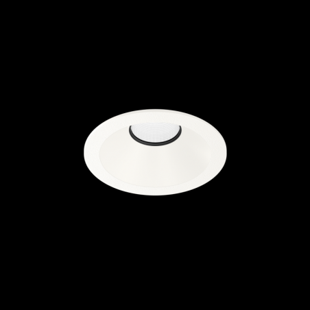 Downlight rond encastré dans le plafond en ASA surface Blanc No matching RAL imprimé en 3D par IQ LUX montage sans outil au moyen de ressorts à lames convient pour une épaisseur de plafond de min. 8 mm profondeur dencastrement 85 mm angle de