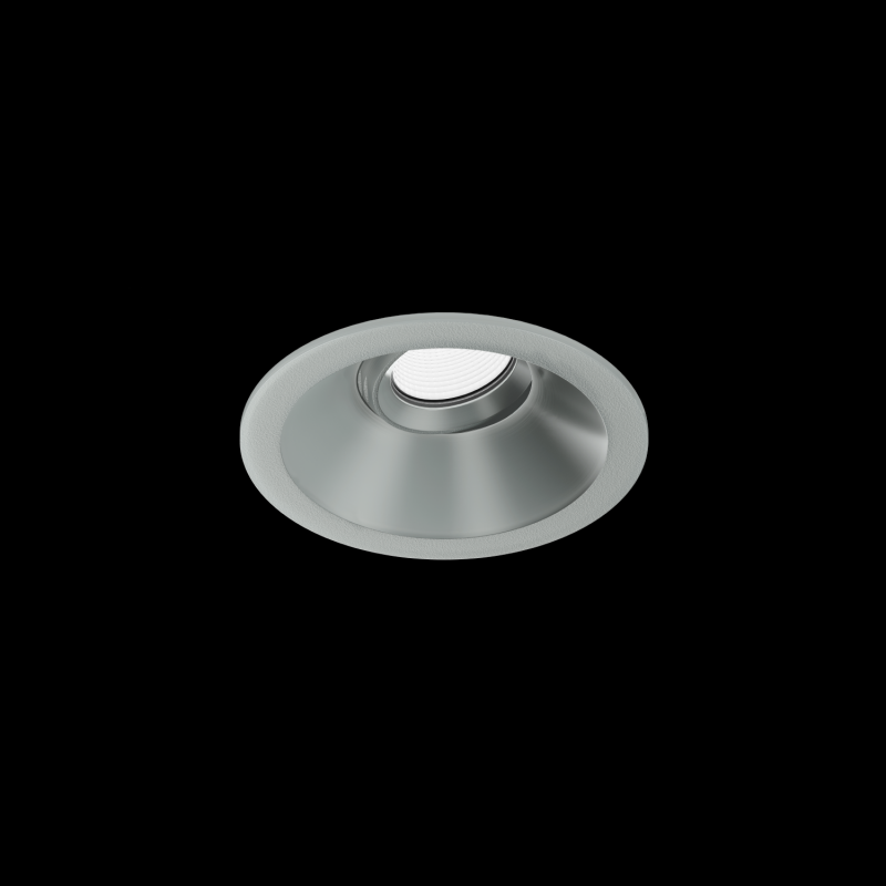 Downlight rond encastré dans le plafond en PET recyclé orientable imprimé en 3D par IQ LUX montage sans outil au moyen de ressorts à lames convient pour une épaisseur de plafond de min. 8 mm profondeur dencastrement 87 mm angle de diffusion