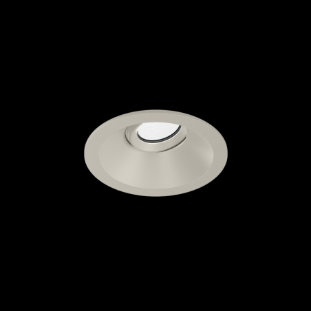 Downlight rond encastré dans le plafond en ASA surface Gris-Soie orientable imprimé en 3D par IQ LUX montage sans outil au moyen de ressorts à lames convient pour une épaisseur de plafond de min. 8 mm profondeur dencastrement 87 mm angle de