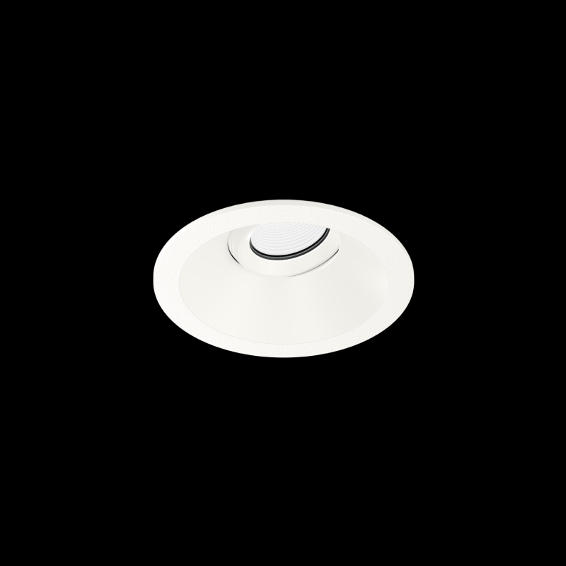 Downlight rond encastré dans le plafond en ASA surface Blanc No matching RAL orientable imprimé en 3D par IQ LUX montage sans outil au moyen de ressorts à lames convient pour une épaisseur de plafond de min. 8 mm profondeur dencastrement 87