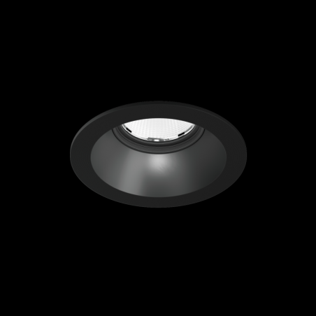 Downlight rond encastré dans le plafond en ASA surface Noir No matching RAL imprimé en 3D par IQ LUX montage sans outil au moyen de ressorts à lames convient pour une épaisseur de plafond de min. 8 mm profondeur dencastrement 77 mm angle de