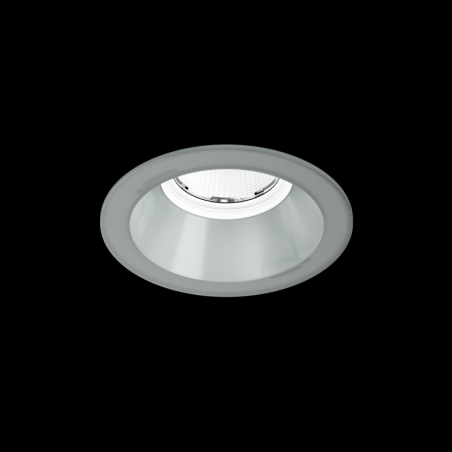 Downlight rond encastré dans le plafond en PET recyclé No matching RAL imprimé en 3D par IQ LUX montage sans outil au moyen de ressorts à lames convient pour une épaisseur de plafond de min. 8 mm profondeur dencastrement 77 mm angle de diffus