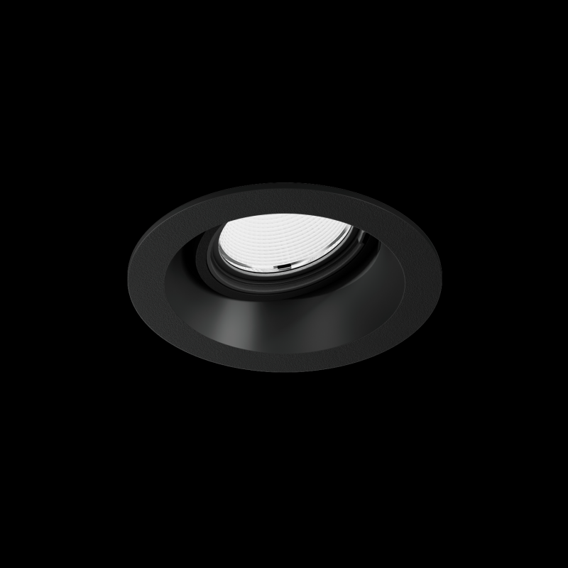 Downlight rond encastré dans le plafond en ASA surface Noir No matching RAL orientable imprimé en 3D par IQ LUX montage sans outil au moyen de ressorts à lames convient pour une épaisseur de plafond de min. 8 mm profondeur dencastrement 85 m