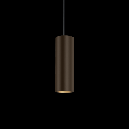 Luminaire suspendu cylindrique en aluminium moulé sous pression surface en Bronze Brushed avec suspension de câble réglable max. 4000 mm en noir de sécurité avec technologie COB Chip on Board pour une efficacité maximale coupure de phase dim