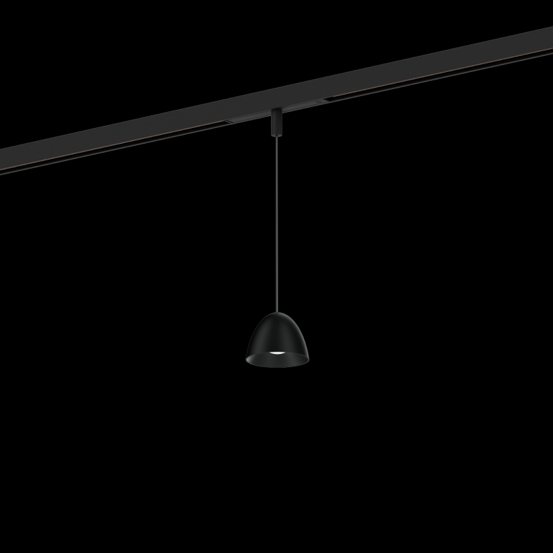 Luminaire suspendu pour rails 48V en aluminium adaptateur de rail avec système de câble réglable en hauteur surface en Noir mat RAL 9011 PCB couleur de lumière 2700 K CRI 90 angle de diffusion 40 48 V indice de protection IP20 Classe 3