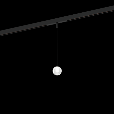 Suspension décorative avec diffuseur sphérique en verre pour rails 48V sortie de câble en aluminium en Noir mat adaptateur de rail en polycarbonate noir de sécurité avec suspension de câble réglable max. 2500 mm PCB couleur de lumière 2700 K