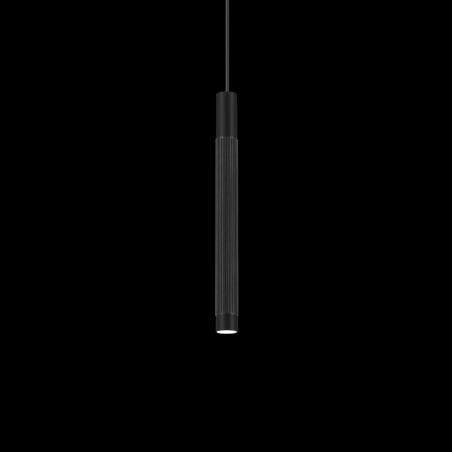 Luminaire suspendu cylindrique en aluminium moulé sous pression surface noir mat revêtement par poudre , structure de surface mate avec suspension de câble réglable max. 2500 mm avec technologie COB Chip on Board pour une efficacité maximale