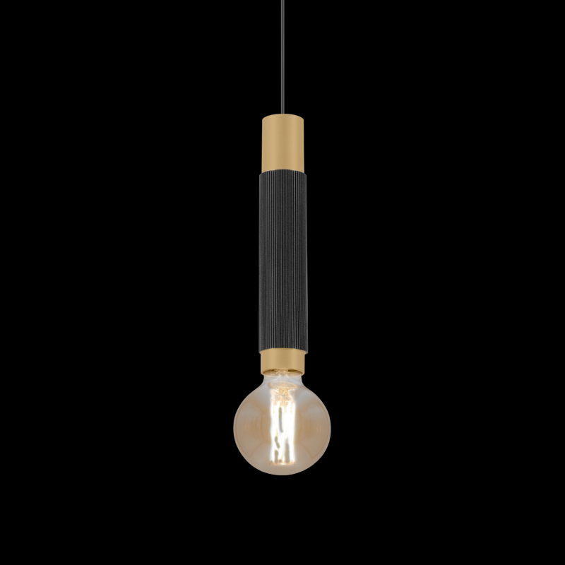 Luminaire suspendu cylindrique en aluminium moulé sous pression surface noir mat champagne revêtement par poudre , structure de surface mate peinture humide , lisse satiné avec suspension de câble réglable max. 2500 mm culot E27 type de lam
