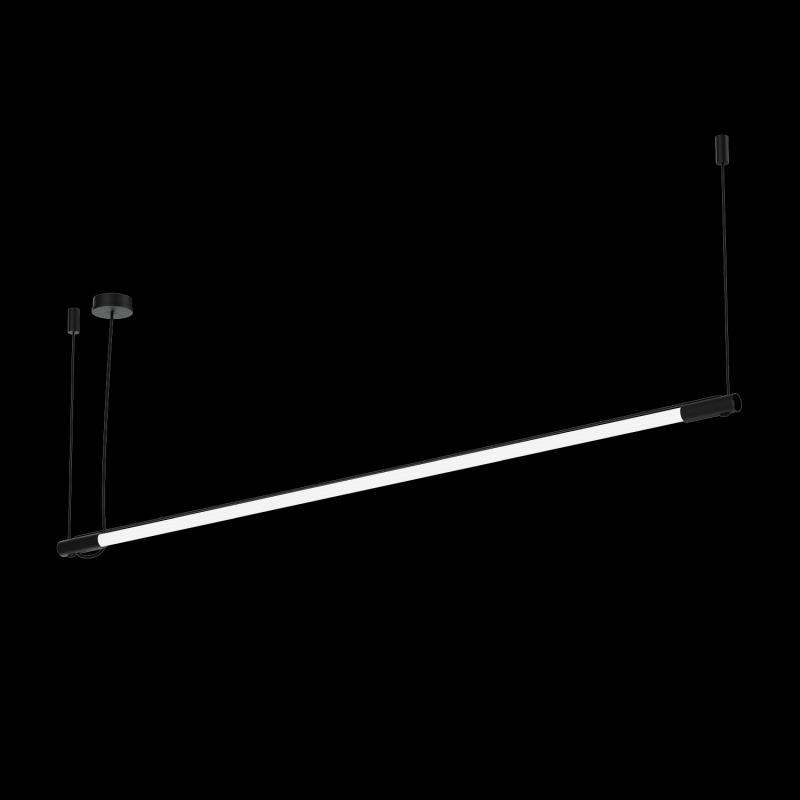 Luminaire suspendu tubulaire en aluminium moulé sous pression surface en Noir mat revêtement par poudre structure de surface mate RAL 9011 avec suspension de câble noir réglable max. 2000 mm coupure de phase dim couleur de lumière 3000 K