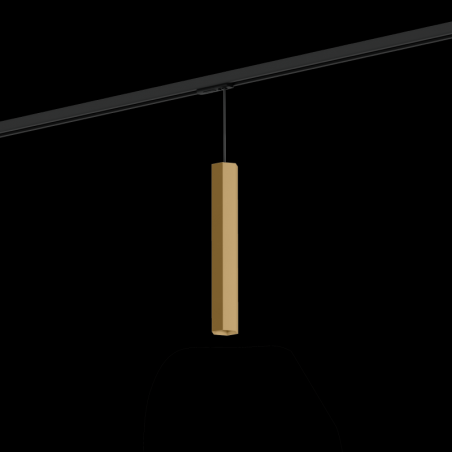 Luminaire suspendu hexagonale en aluminium moulé sous pression avec adaptateur de rail monophasé surface en Champagne Brushed adaptateur de rail en polycarbonate et câble en noir de sécurité culot GU10 type de lampe PAR11 max. 12W 220 - 240 V