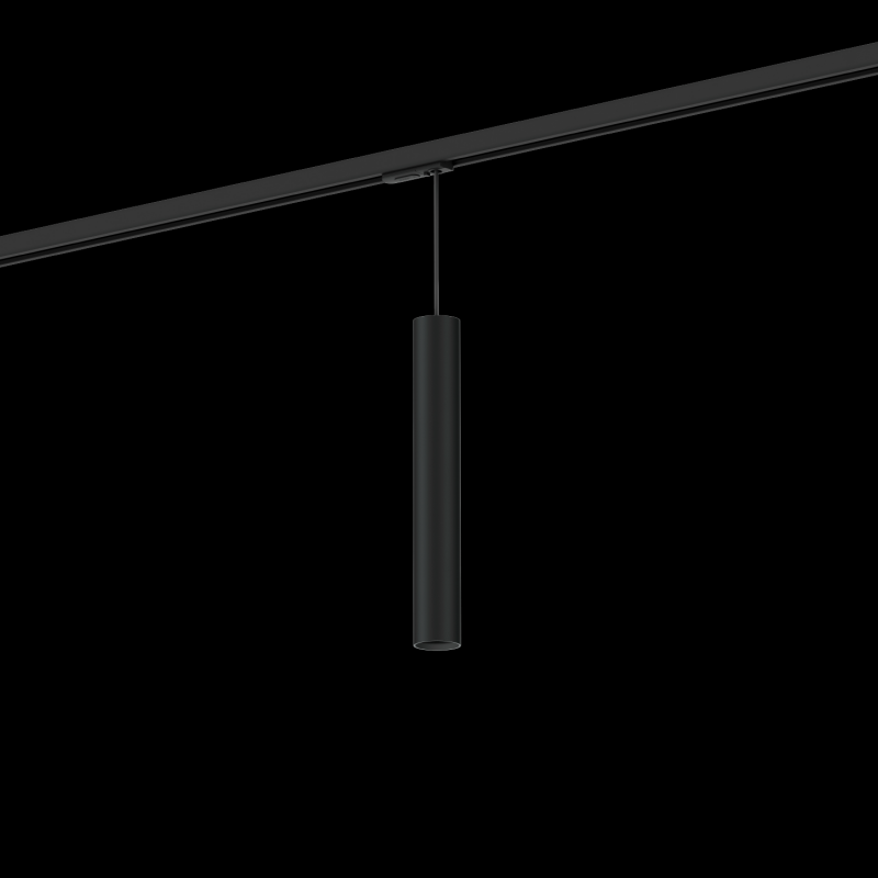 Luminaire suspendu cylindrique en aluminium moulé sous pression avec adaptateur de rail monophasé surface en Noir mat revêtement par poudre structure de surface mate adaptateur de rail en polycarbonate et câble en noir de sécurité culot GU1