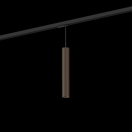 Luminaire suspendu cylindrique en aluminium moulé sous pression avec adaptateur de rail monophasé surface en Bronze Brushed adaptateur de rail en polycarbonate et câble en noir de sécurité culot GU10 type de lampe PAR11 max. 12W 220 - 240 V