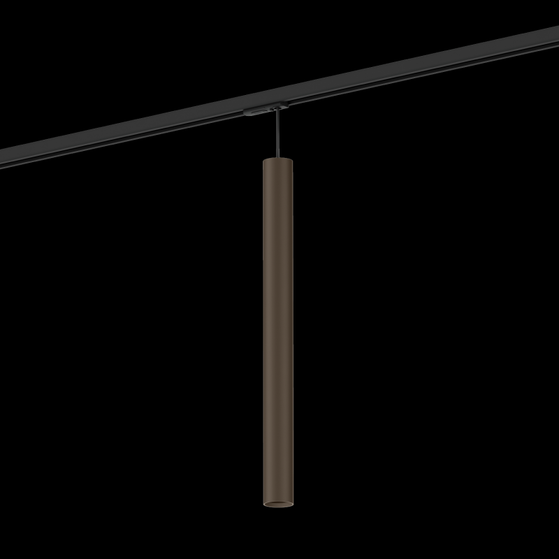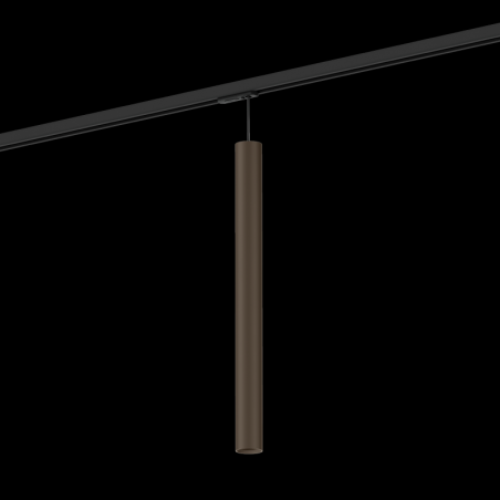 Luminaire suspendu cylindrique en aluminium moulé sous pression avec adaptateur de rail monophasé surface en Bronze Brushed adaptateur de rail en polycarbonate et câble en noir de sécurité culot GU10 type de lampe PAR11 max. 12W 220 - 240 V
